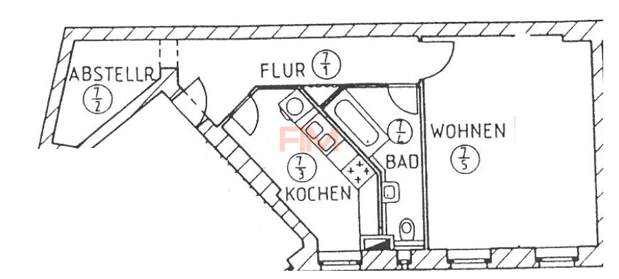 Die separate Küche ist funktional geschnitten und verfügt über ein Fenster. Sie bietet ausreichend Platz für eine Küchenzeile sowie einen kleinen Ess- oder Arbeitsbereich. Die vorhandenen Fliesen und die klare Raumstruktur machen die Küche praktisch und pflegeleicht.