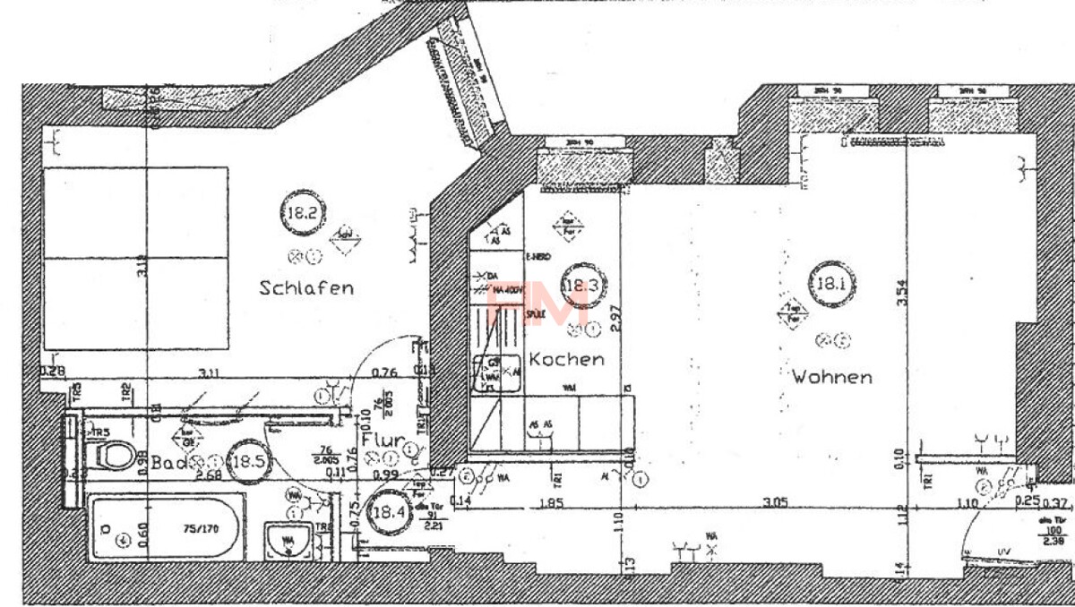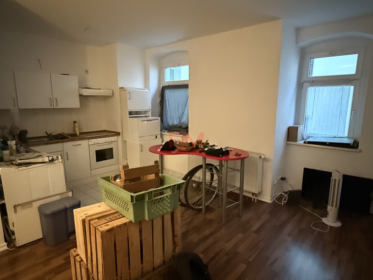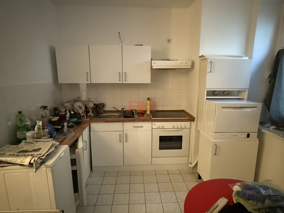 Der Wohnbereich ist offen gestaltet und mit einer modernen Einbauküche ausgestattet, die sich harmonisch in den Raum einfügt. In den Wohn- und Schlafräumen wurde dunkles Laminat verlegt, das der Wohnung eine zeitgemäße und wohnliche Atmosphäre verleiht. Das geflieste Badezimmer verfügt über eine Badewanne und ist funktional sowie zeitlos gestaltet.